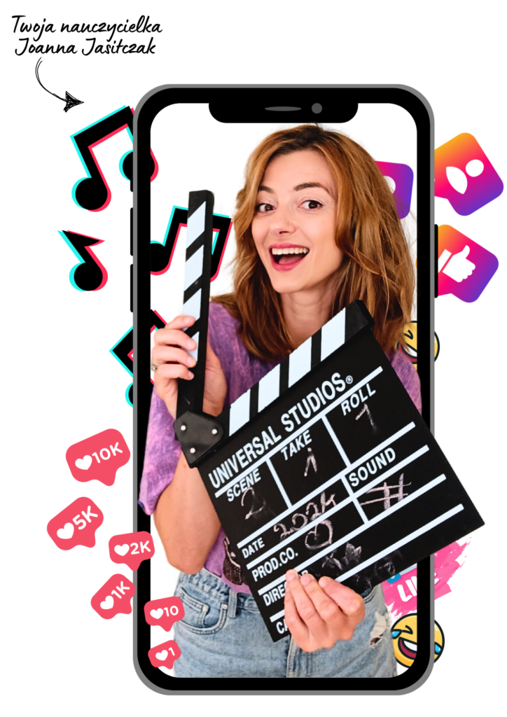 To wiedza ze szkół filmowych… tylko przefiltrowana przez świat TikToka i social mediów – bez nudnych wykładów i długich fabuł. Masz konkretną bazę, własny bank pomysłów i sprawdzone narzędzia.