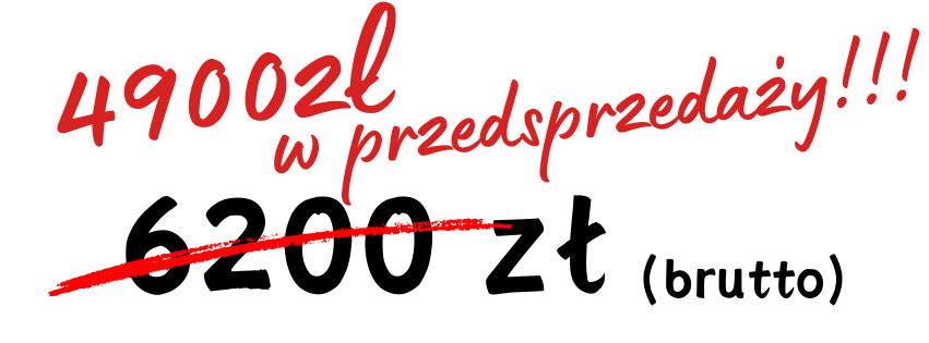 Oznacza to, że jak tylko kurs osiągnie pułap 100 sprzedanych egzemplarzy, zabieram się za jego tworzenie, tak by pierwsze moduły szkolenia mogły trafić w Twoje ręce już w sierpniu. W przeciwnym razie zwracam Ci pieniądze. Zakupując kurs w przedsprzedaży korzystasz z promocyjnej ceny oraz bonusów. Masz również pewność, że trafi on w Twoje ręce, czas sprzedaży będzie ograniczony. To także dobry czas na przygotowanie się do nauki. Zdążysz „pozamykać” swoje sprawy, tak by mieć czas na pracę nad swoim kontentem, gdy kurs będzie już gotowy:)